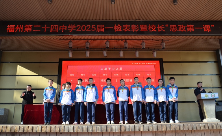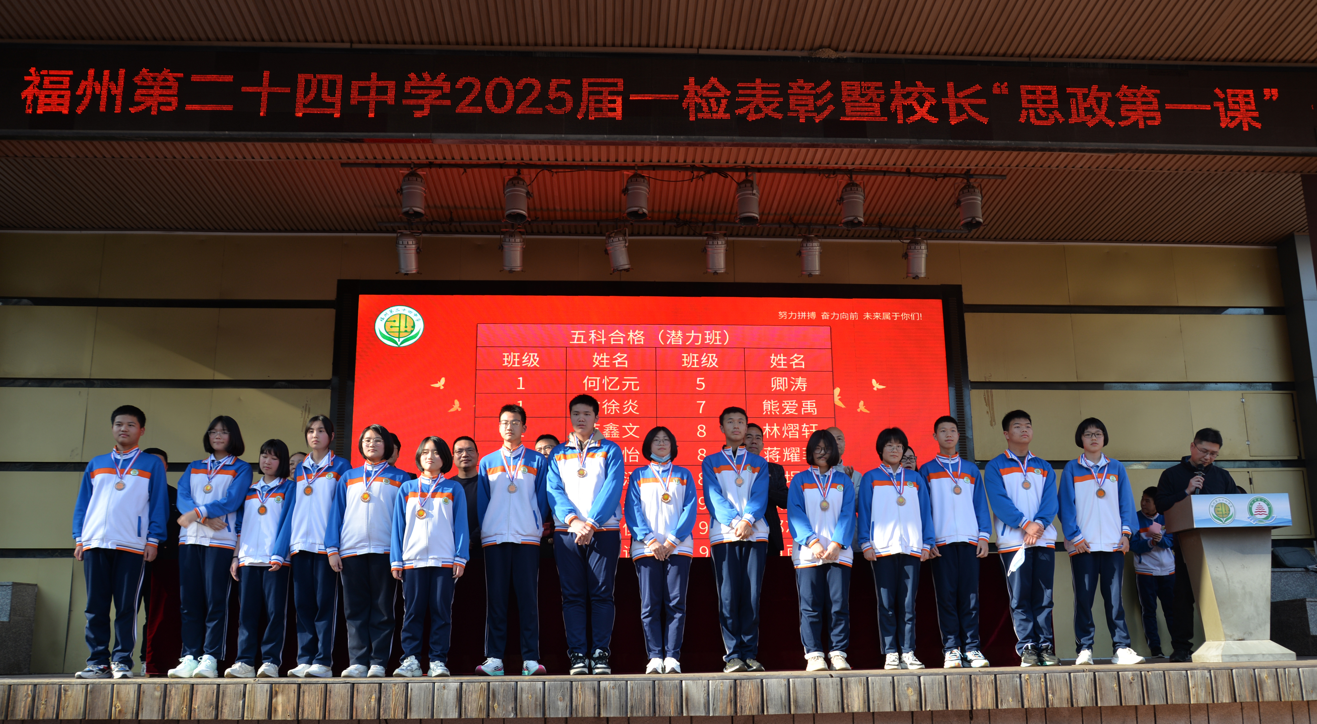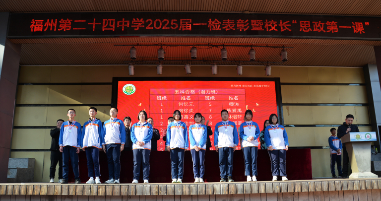 在陈永清段长简短致词后,校领导对在一检考试中表现优异的学生进行表彰。年段设立了多个奖项,以肯定在全面发展与不同学科上有突出表现的同学。此外,年段还公布了最具潜力名单,旨在鼓励在学习与表现上取得显著进步的同学。
