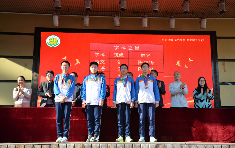 表彰结束后,九年(9)班陈裔锋同学作为优秀学生代表发言,分享了自己的学习秘籍:合理规划时间、高效利用课堂、积极主动思考以及多做总结反思是他取得优异成绩的关键。