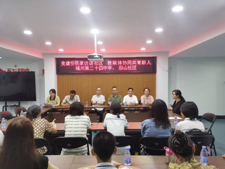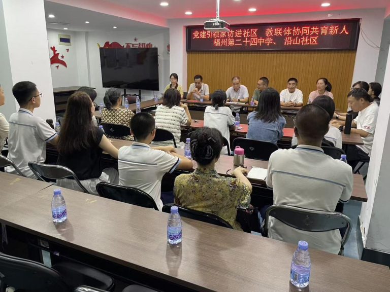 为深入落实家校社协同育人机制,扎实推进 “党建引领教联体” 建设,10 月 15 日晚,福州第二十四中学携手沿山社区,在社区党建活动室隆重举办 “家访进社区” 主题活动。校领导班子、德育处主任、初二年段长、心理教师、党员教师代表与沿山社区代表齐聚一堂,与初二年级部分学生及家长面对面深入交流,聚焦初中关键成长阶段,共同探讨科学育人策略,为孩子的成长之路注入温暖力量。本次活动由学校党总支副书记段冠军主持,退休支部组织委员、校关工委常务副主任吴宏奋也专程到场,以丰富经验传经送宝,让活动更添温度与深度。