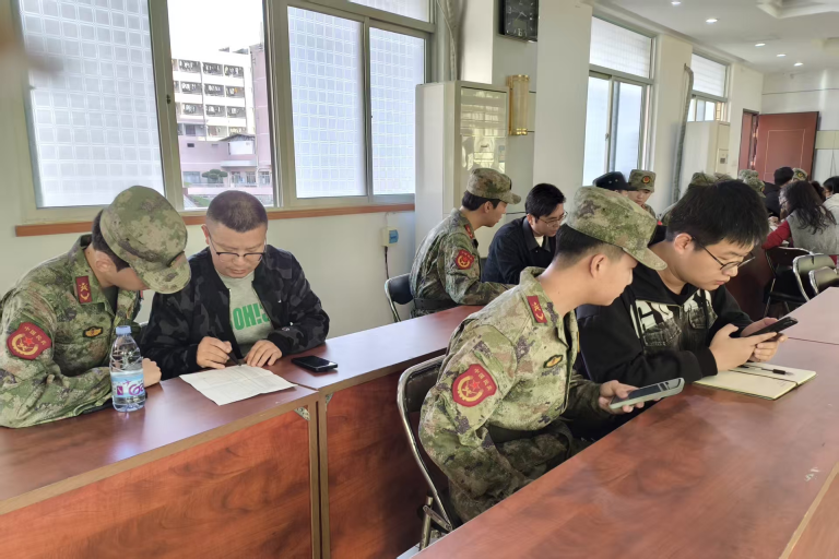 中职新生军训现场,各连队教官与班主任开展专项对接。教官详细介绍队列训练、纪律作风、体能表现等情况,重点沟通个别学生适应问题;班主任同步分享学生性格特点、健康状况及日常表现,共同制定个性化引导方案。双方明确分工、密切配合,以精准沟通筑牢军训管理基础,助力新生在磨砺中快速成长。