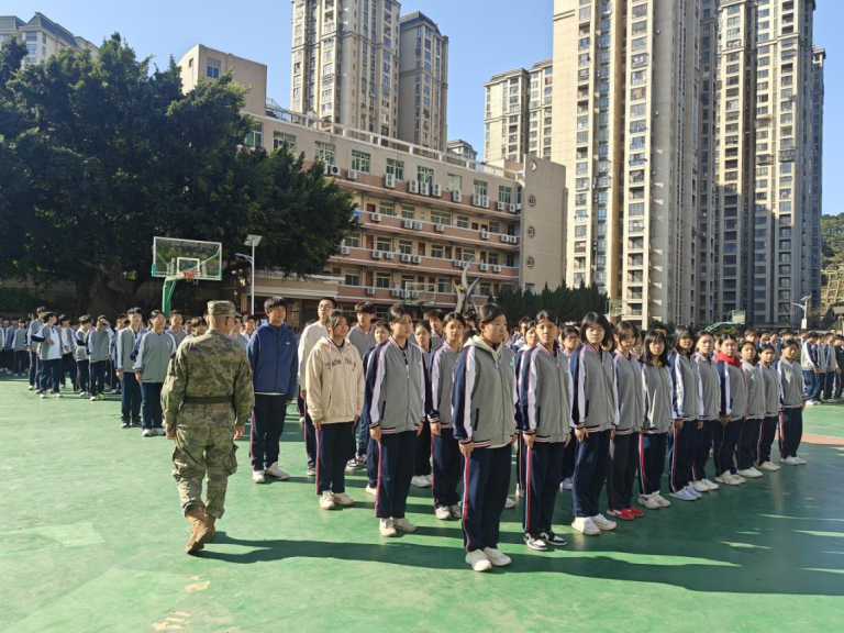 微风裹挟着青春的朝气吹拂在福州经济技术开发区职业中专学校的校园里。11 月16 日上午,25 级全体新生身着整齐校服,以昂扬的姿态列队集结,共同迎接为期7天的校内军训开幕式。