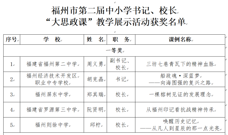 热烈祝贺我校党总支书记胡克晶在福州市第二届中小学书记、校长“大思政课”教学展示活动中,凭借课例《船政魂・深蓝梦——向海图强的复兴之路》脱颖而出,荣获一等奖!