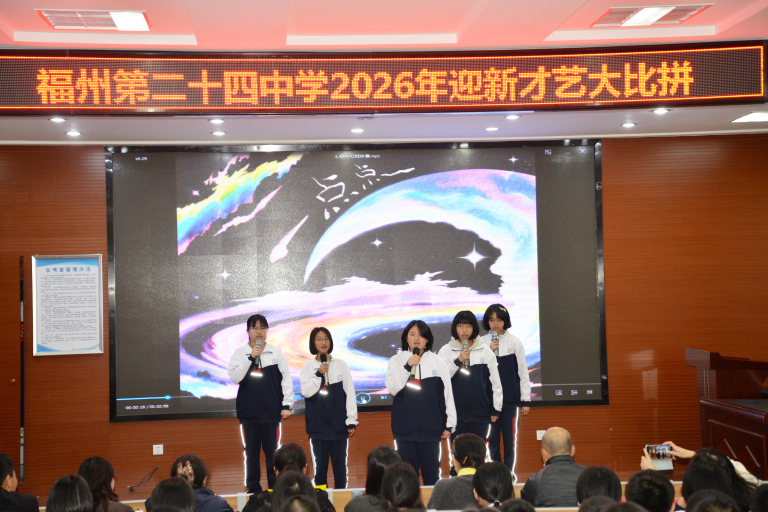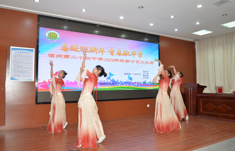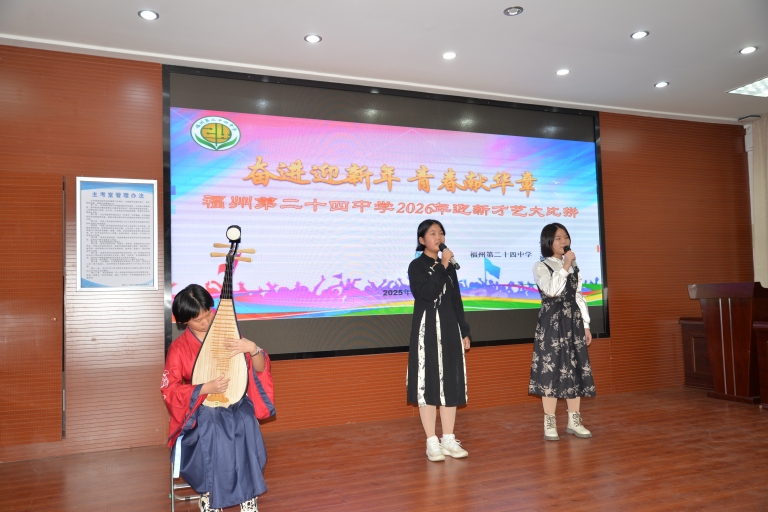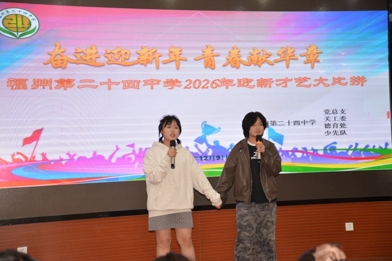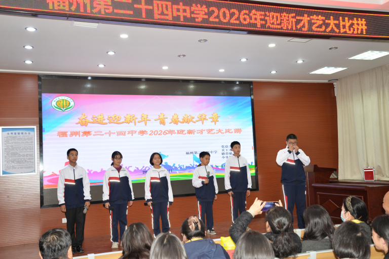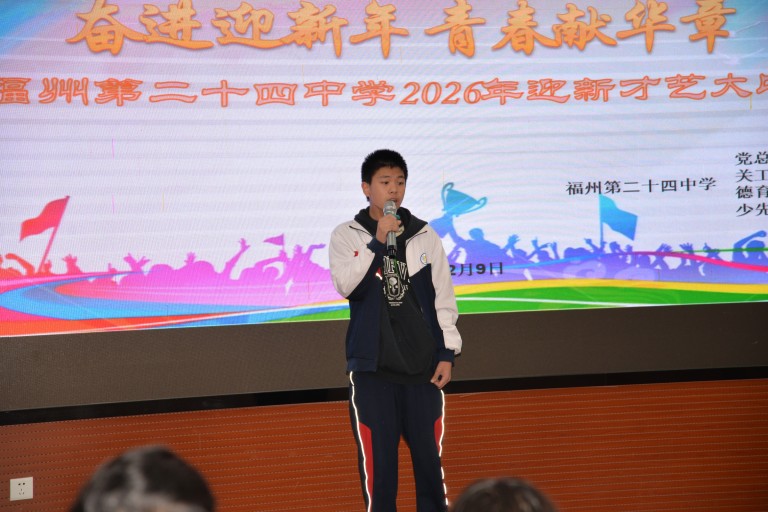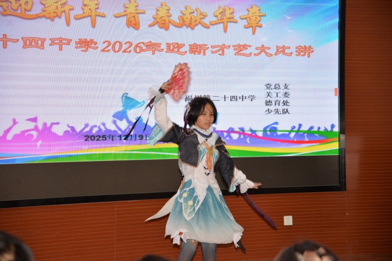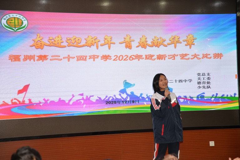 为迎接2026年的到来,充分展现新时代青少年昂扬向上的精神风貌,在学校党总支的统一指导与关心下一代工作委员会(关工委)、德育处、少先队的共同组织下,福州第二十四中学于近日隆重举行了“奋进迎新年,青春献华章”迎新才艺大比拼活动。此次多部门联动的校园文化活动,不仅营造了浓厚的迎新氛围,也成为落实“五育并举”、推动全面育人的一次生动实践。