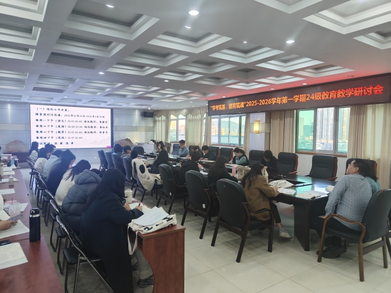 为深入探讨"学考筑基,德育铸魂"主题,推动中职学考与德育协同育人实践,2025年12月10日下午第三四节课,福州经济技术开发区职业中专学校在七楼会议室召开了25-26学年第一学期24级年段教育教学研讨会。会议聚焦学考改革背景下的教学质量提升与德育管理工作,全面分析年段现状,分享教学经验,部署下阶段重点工作。刘真段长主持会议,相关校级领导、中层干部以及全体24级班主任及科任教师齐聚一堂参加研讨。
