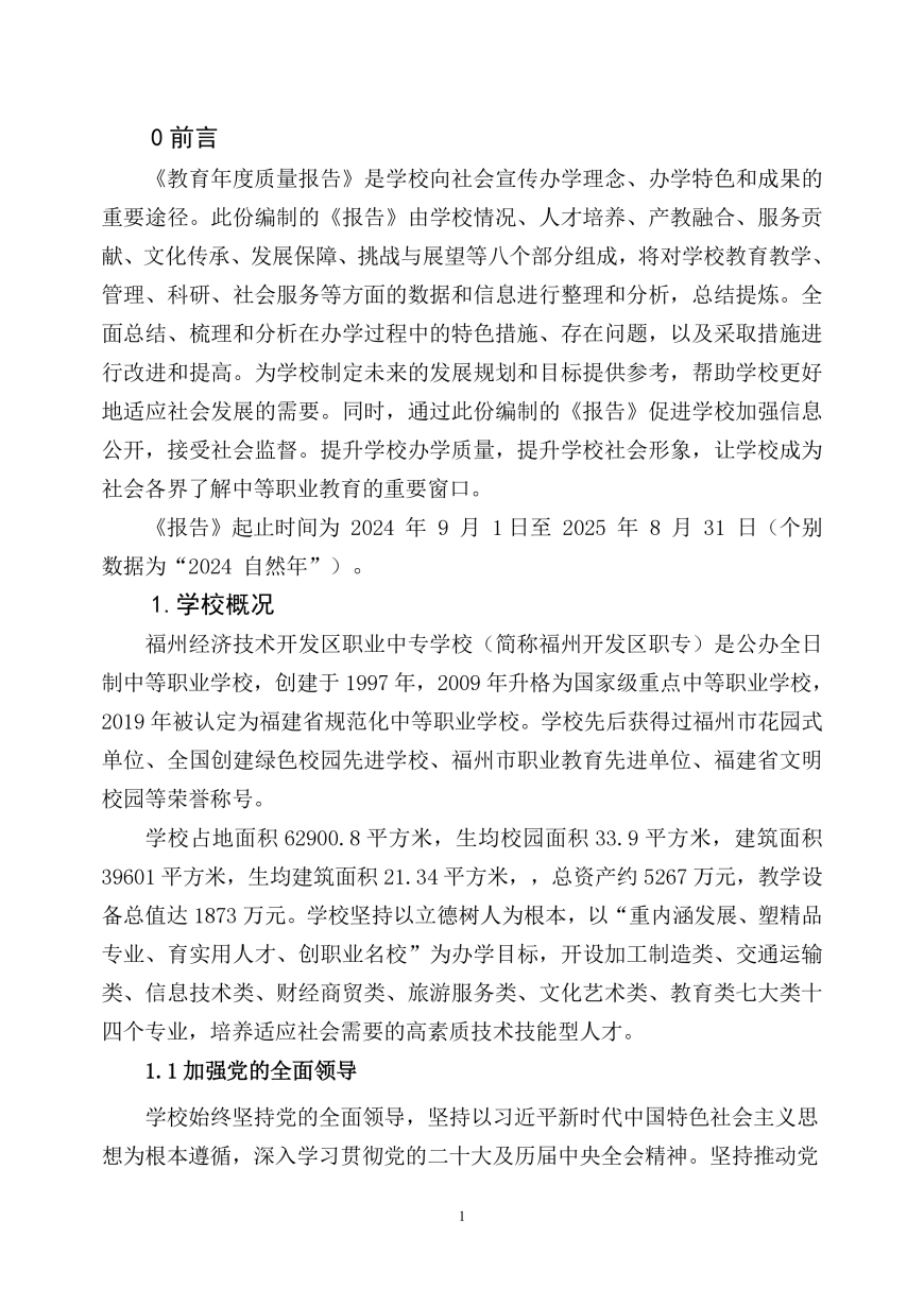 福州经济技术开发区职业中专学校教育质量年度报告(2025年)