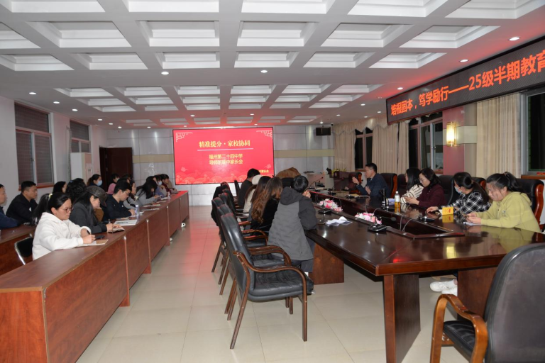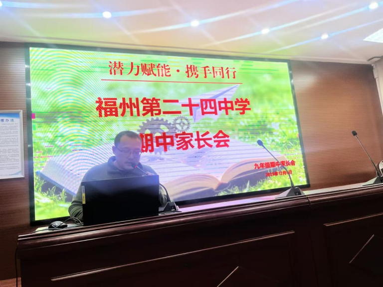 为精准对接不同层次学生成长诉求,筑牢家校协同育人桥梁,助力九年级学子在升学备考关键期稳步前行,12月9日晚,福州第二十四中学2025-2026学年第一学期九年级期中家长会隆重召开。学校领导、九年级全体班主任、科任教师、集备组长与全体学生家长齐聚校园,以“分层施策、精准发力”为核心,共商育人良策,共绘成长蓝图。