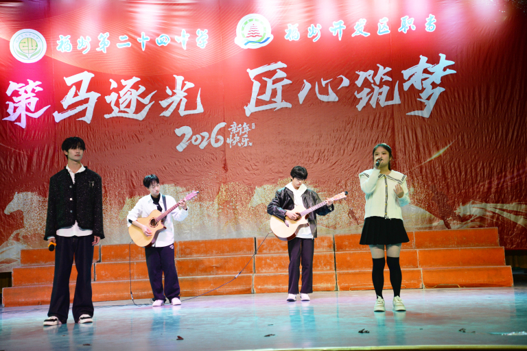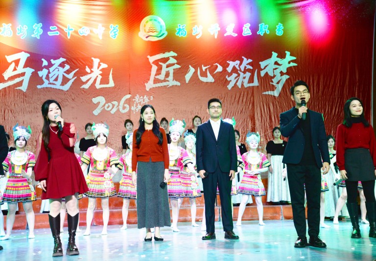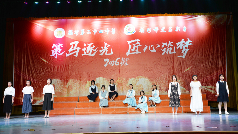 灯火璀璨映笑脸,笑语盈盈庆新元。12月30日晚七点,福州第二十四中学、福州经济技术开发区职业中专学校2026元旦晚会隆重上演。师生欢聚一堂,以歌舞寄情、以欢笑传暖,在辞旧迎新的温馨氛围中,共赴一场充满青春活力与家国情怀的视听盛宴,喜迎马年新春的到来。