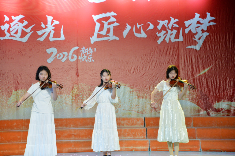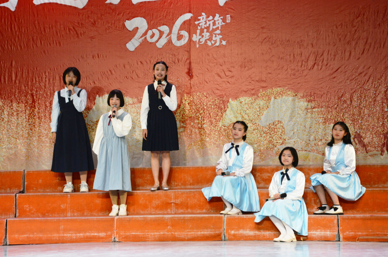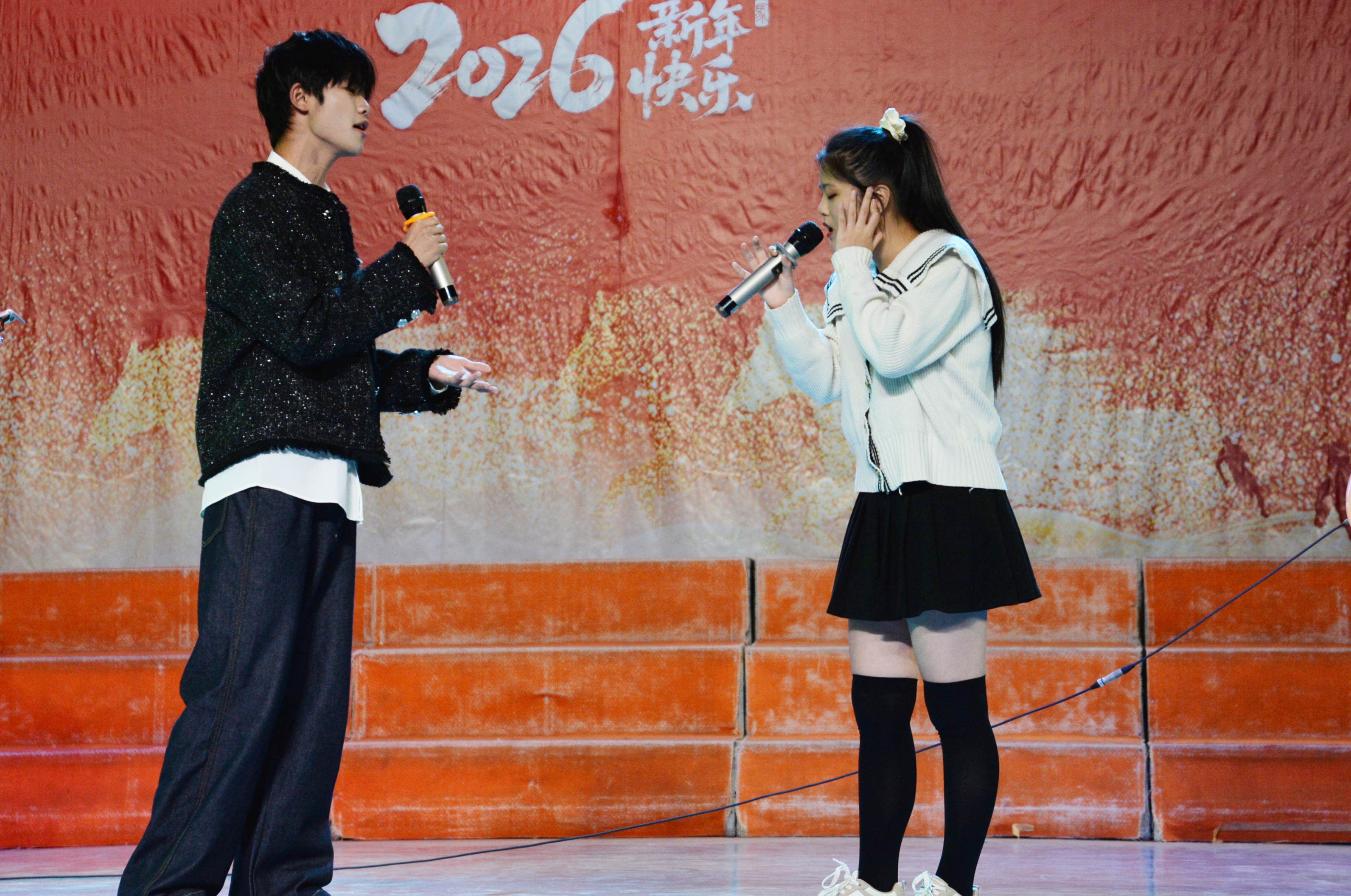最后,老师们带来歌曲联唱《相亲相爱一家人》,熟悉的旋律回荡在会场,师生们齐声合唱,荧光闪烁如星河汇聚,温馨氛围包裹着每一个人,定格下师生同心的动人瞬间。 乐声渐歇,暖意不散。这场充满青春活力与温情的盛宴,不仅展现了学校师生的多才多艺,更凝聚了师生同心、携手奋进的深厚情谊。新的一年,学校师生将带着晚会的热忱与朝气,策马扬鞭、笃行不怠,共赴新程,书写更加灿烂的华章。