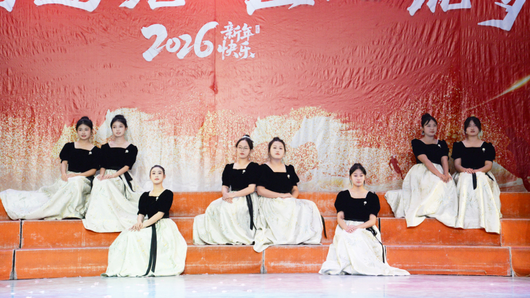 晚会高潮迭起,亮点纷呈。礼仪社带来的时装表演《华裳新绎》更是惊艳全场,千年东方美学与现代时尚巧思完美融合,每一步台步都尽显传统与新潮的碰撞之美。女声小组唱《无锡景》将烟雨江南的婉约风情娓娓道来,弦乐合奏《我爱你,中国》则以悠扬旋律,抒发着师生们对祖国的赤诚热爱,将晚会推向高潮。舞蹈《春望》用灵动舞步描绘出万物复苏的春日盛景,女声小组唱《世界赠与我》《我的情歌》传递出成长路上的温暖与力量。