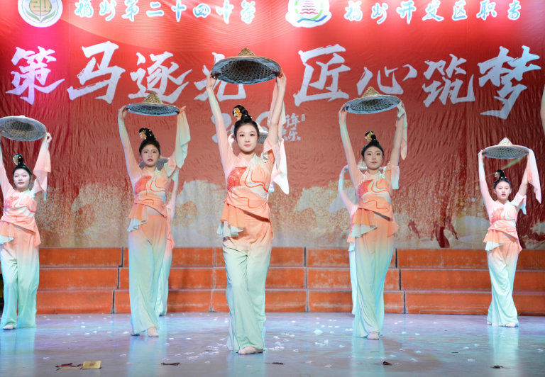 致辞毕,精彩节目轮番登场,为观众献上一场视听盛宴。街舞社的同学们率先亮相,他们将校服换成舞服,用动感十足的舞步、活力四射的节奏,诠释着对舞蹈的热爱,瞬间点燃全场热情。紧接着,女教工们带来藏舞串烧《次真拉姆》与《洗衣歌》,柔美灵动的舞姿演绎出高原的空灵悠远,热烈欢快的节拍传递出军民鱼水情,展现出新时代教师的多才多艺与昂扬风貌。
