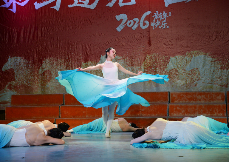 幽默与温情交织,好戏接连上演。相声《论平面美术生的自我修养》独辟蹊径,两位美术生用幽默诙谐的语言,将画笔与画布外的校园日常娓娓道来,颜料沾衣的窘迫、创意迸发的喜悦,引得台下观众捧腹大笑。舞蹈《漫漫长河》则以刚柔并济的肢体语言,勾勒出历史的厚重与祖国的辉煌,让观众在舞步流转间感受岁月的波澜壮阔。