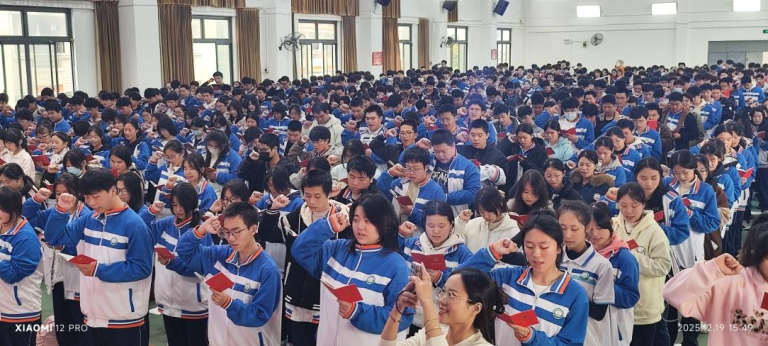 胡书记还分享了校友反哺母校的感人故事:美国校友会会长专程返校,为初三学子捐赠十万元奖学金。他以此激励全体学生奋力拼搏,全力以赴面对明年三月即将到来的技能考试。胡书记强调,这是同学们成年后的首场重要战役,是“检验职教成果、开启人生新篇的关键一程”。他提出三点期许:一要信念如磐,将知识技能落到实处;二要方法为舟,高效复习,查缺补漏;三要并肩同行,在互助中共攀高峰。
