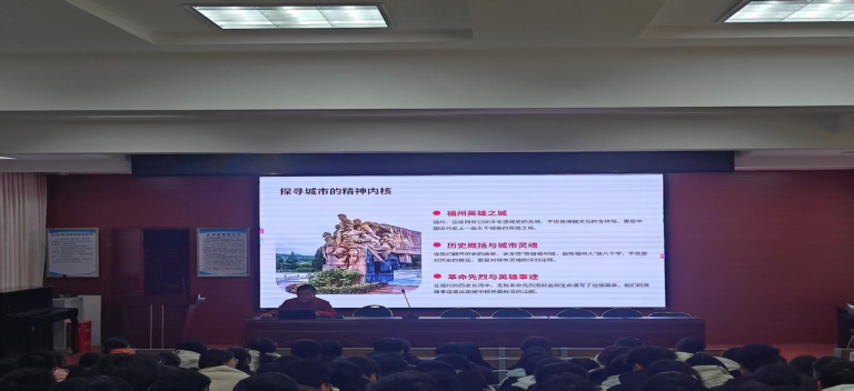 为深入贯彻落实中共福州市委教育工委、福州市教育局工作部署,扎实推进“英雄福州城、血性福州人”主题教育活动,引领广大青少年致敬英雄、见贤思齐、传承红色基因、厚植爱国情怀,1月23日下午,福州开发区职专精心策划并成功举办专题讲座,主题为“英雄福州城、血性福州人--一座古城的精神密码与时代传承”。
