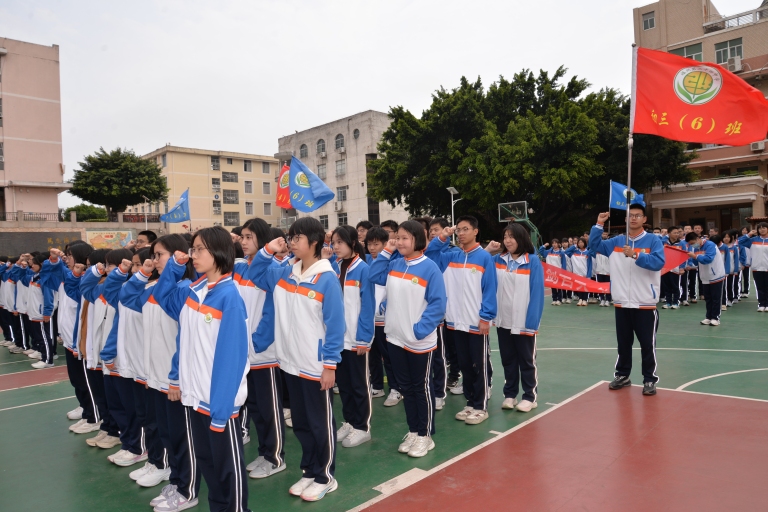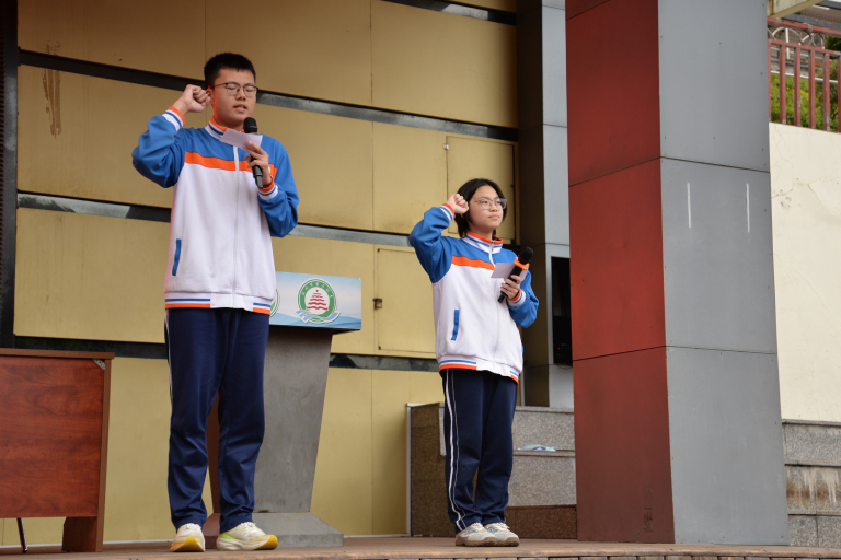 随后,全体初三学子高举右拳,庄严宣誓。铿锵誓言响彻校园上空,尽显少年意气与奋进决心。