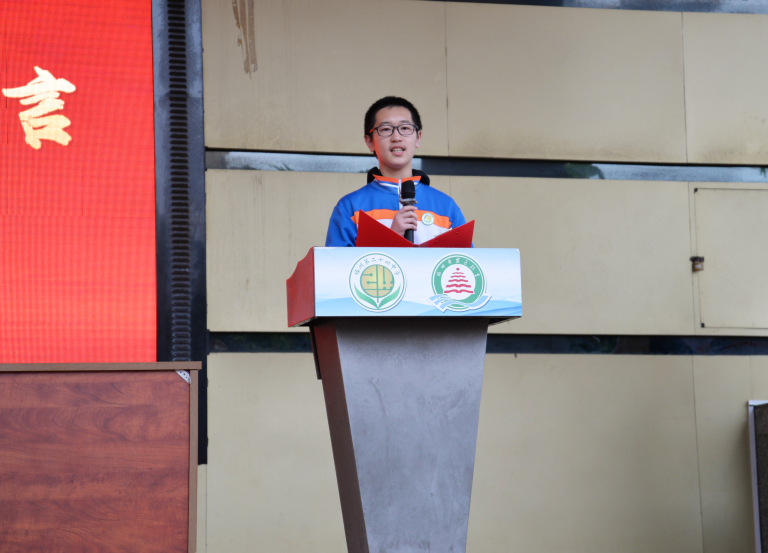 学生代表初三(10)班董喆诚心怀感恩,致谢师恩引路、父母守护,立下九十天砺剑的铮铮誓言:愿以奋斗为笔,稳心笃行,续写属于少年的无上荣光。