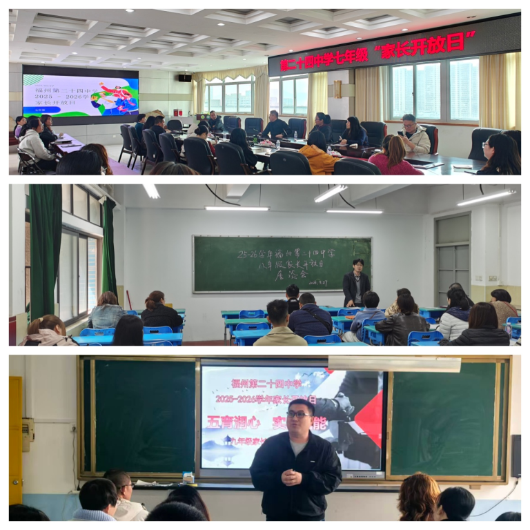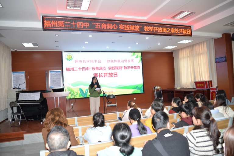 为深入落实立德树人根本任务,践行“五育并举”育人理念,深化家校协同育人,凝聚教育合力,3 月 27 日星期五上午,福州第二十四中学隆重开展以 “五育润心,实践赋能” 为主题的 2025-2026 学年区级教学开放周家长开放日活动。百余名家长受邀走进校园,沉浸式观摩校园日常、聆听优质课堂、体验学生学习生活、感受育人氛围,全方位了解学校教育教学管理成果与学生成长风采,共赴一场温暖而深入的家校之约。