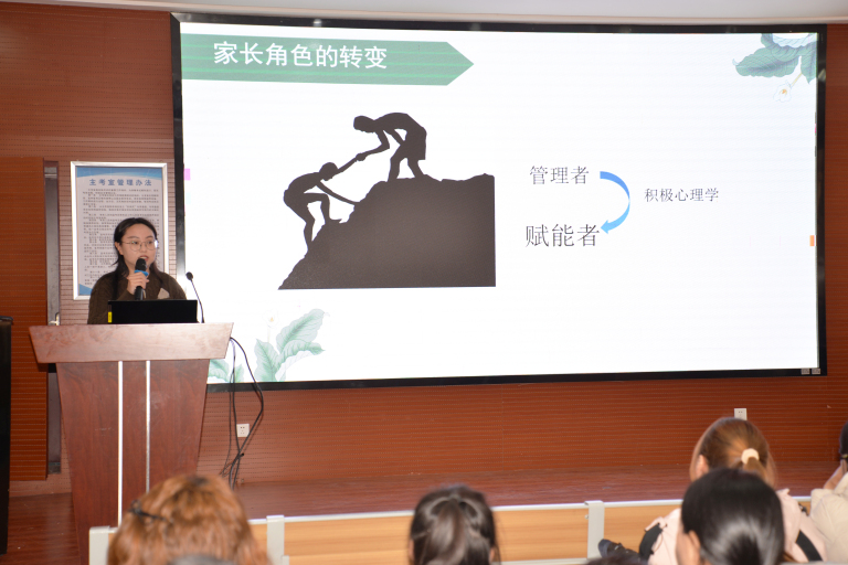 紧接着,林泓斌老师带来心理健康指导专题的家庭教育讲座。她结合真实案例,深入浅出地讲解了青春期孩子的心理特点、常见困扰及应对策略,引导家长以理解、尊重与信任构建和谐的亲子关系,为家庭教育提供了专业而实用的指导。