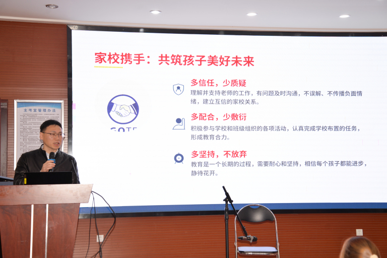 上午10点,家校交流会在德育处林静主任的主持下在阶梯教室正式拉开帷幕。