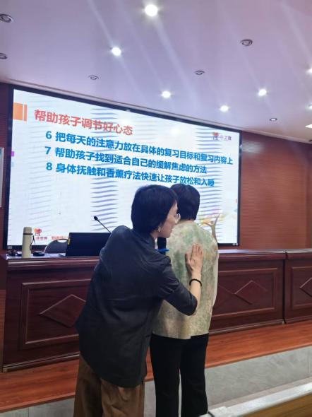 刘老师以《中考,我陪你——做智慧且从容的家长》为题,指出九成考生害怕让父母失望,普遍存在烦躁、失眠等问题。她强调,家庭教育应注重情绪接纳与倾听,帮助孩子每日复盘、适度运动、科学补充营养,营造宽松的家庭氛围。这是教联体推动家校深度联系、提升家庭教育质量的重要实践。