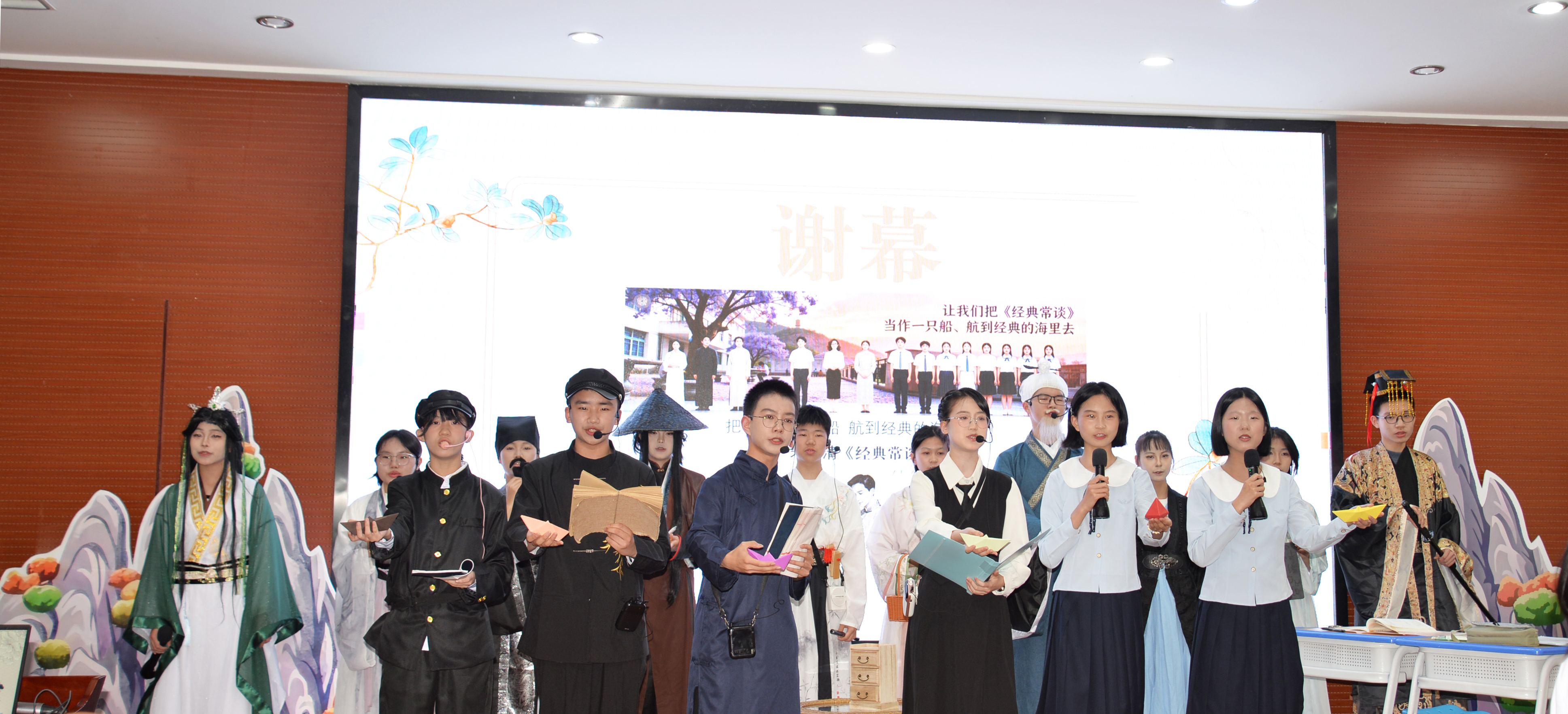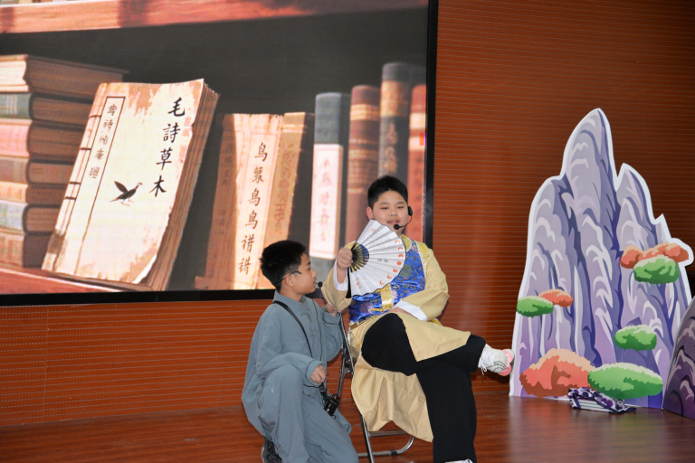 八年 9、10 班同学精彩演绎《经典常谈》,将这本难度较高的整本书阅读以多幕沉浸形式呈现,演绎唯美动人、酣畅淋漓,彰显传统文化的博大精深。
