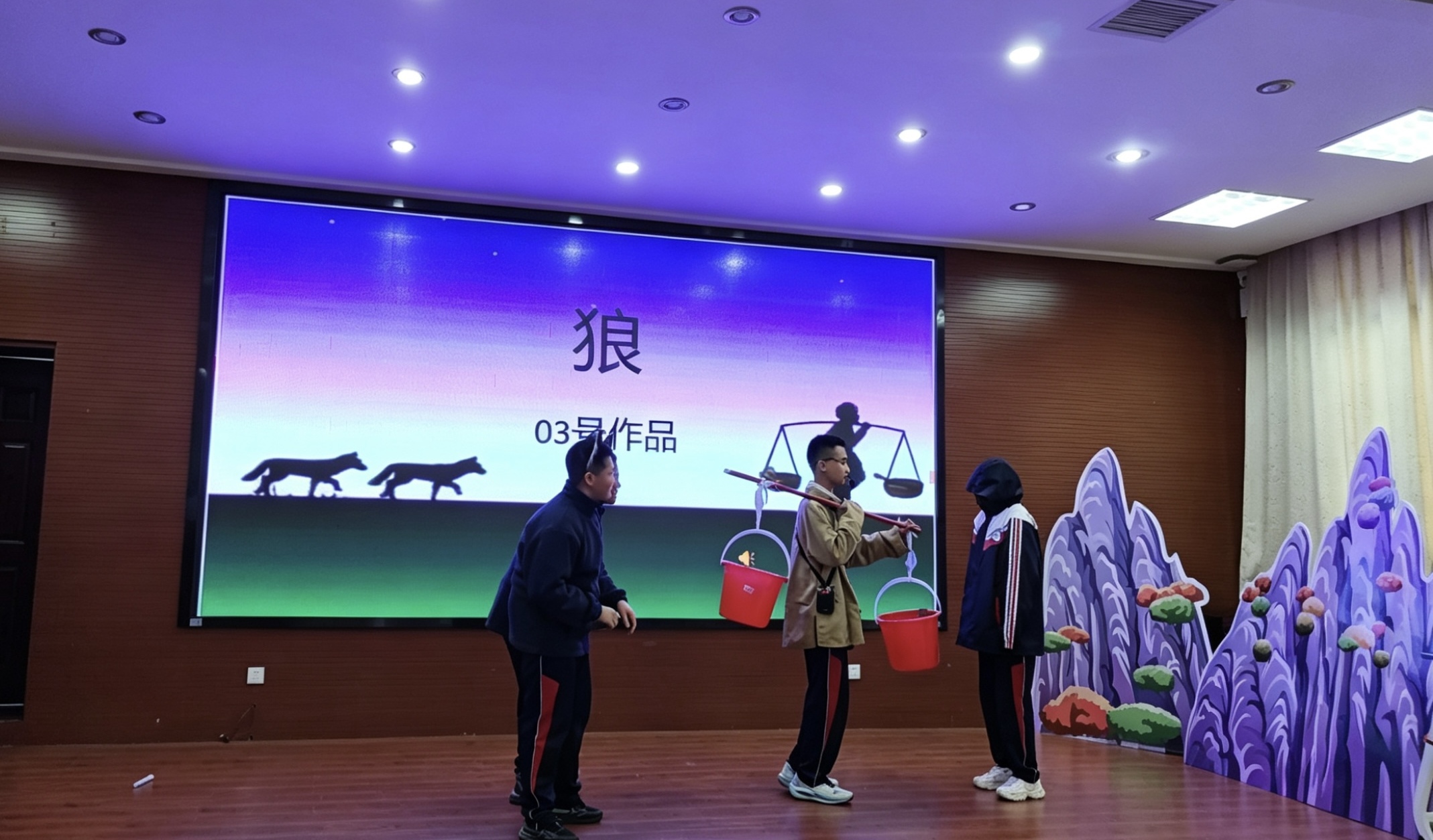 七年 9 班、10 班同学演绎《狼》,灵动传神诠释文本深意,沉浸式再现故事情节,尽显蒲松龄笔下智勇交锋的精妙张力与人性思辨。
