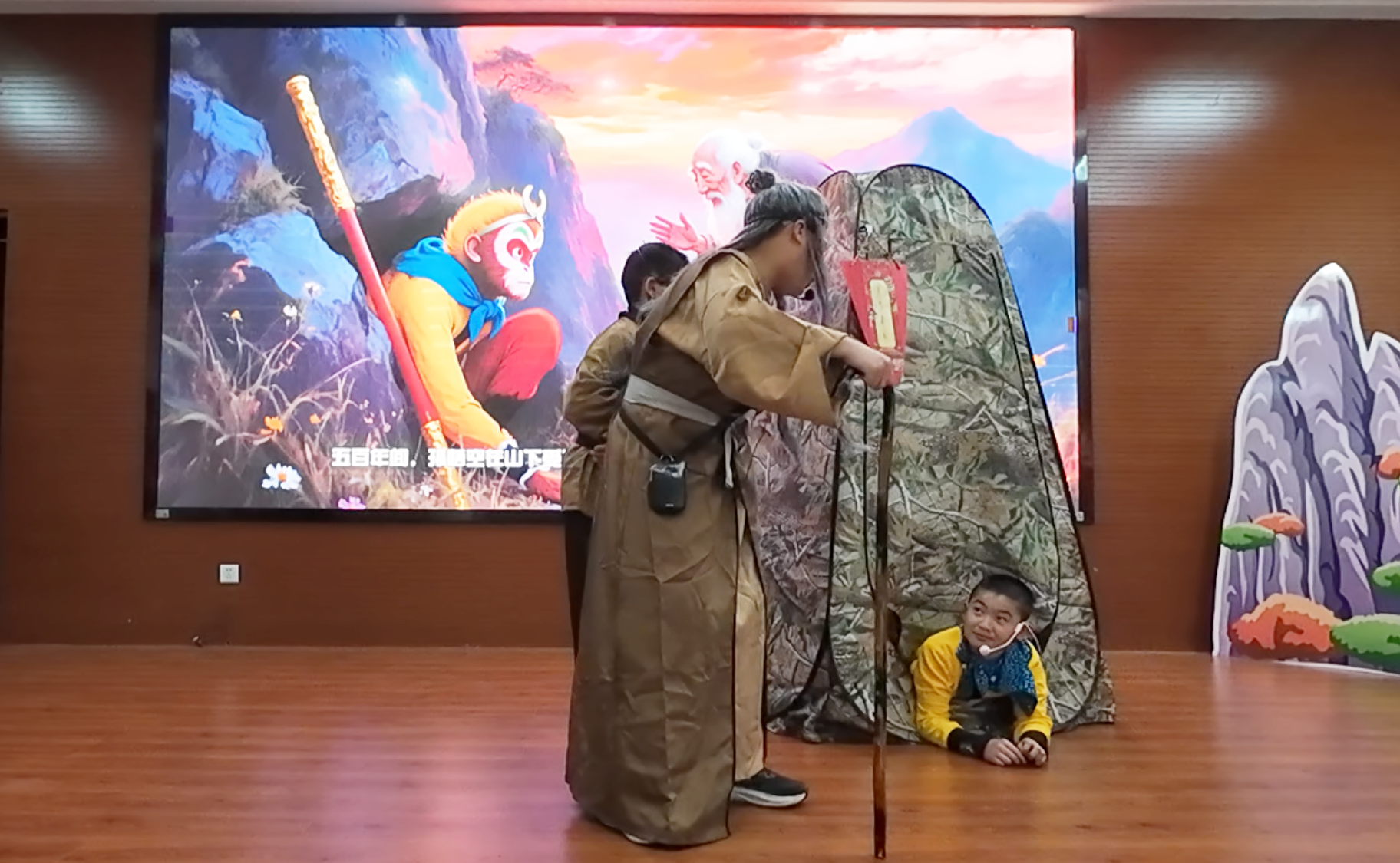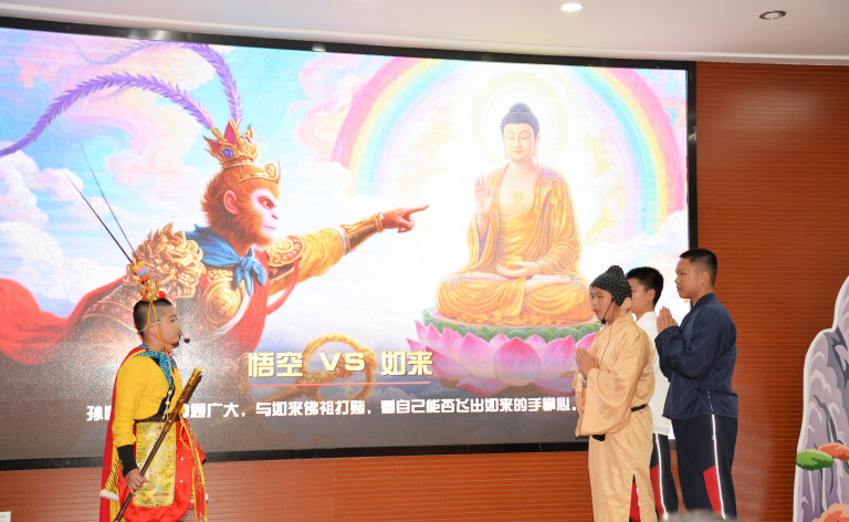 七年 3 班、4 班同学以灵动演技演绎《五行山下》,生动展现悟空被压后的委屈、坚守与期盼,带领观众重温经典,体悟逆境沉淀与初心坚守的内涵。