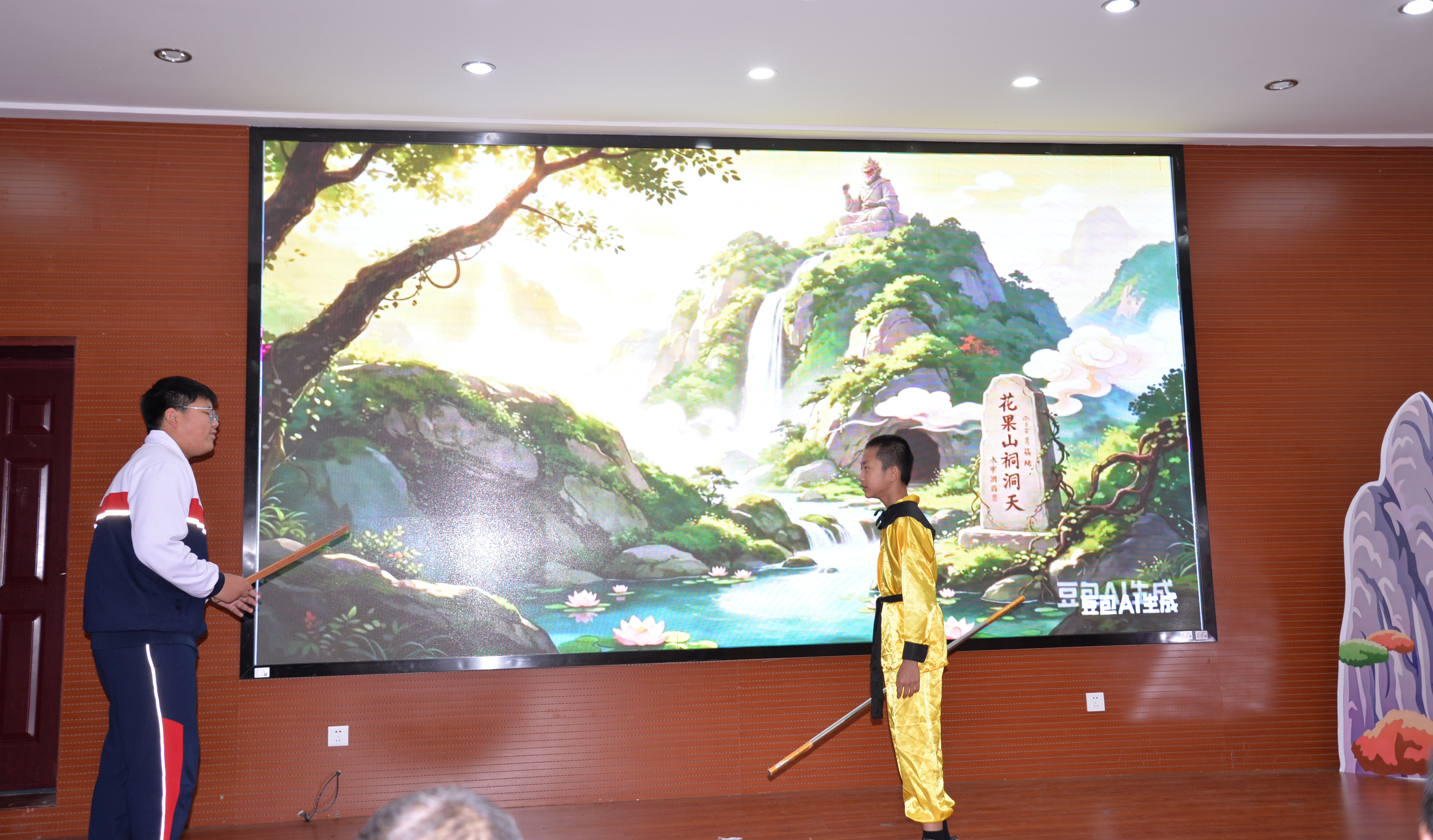 七年 7 班同学倾情演绎经典《大闹天宫》,尽显神话奇幻豪情,以灵动表演诠释对名著的鲜活理解,传递勇敢与正义,深深感染在场每一位观众。